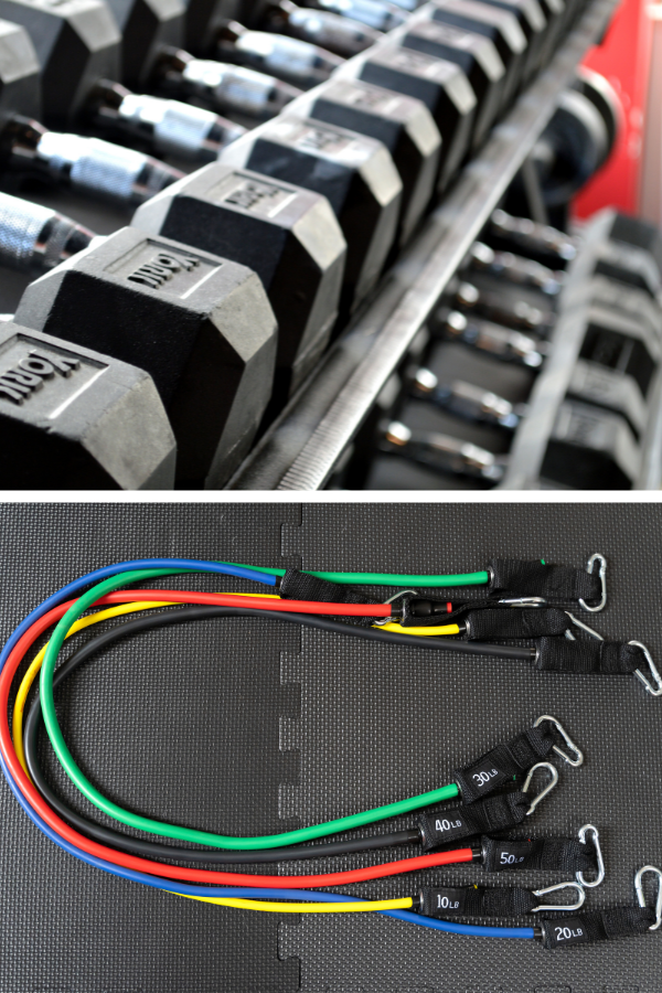 Combining the static/constant resistance from free weights and the variable resistance from bands at the same time forces your muscles to work harder, leading to improved muscle activation and a more intense workout.