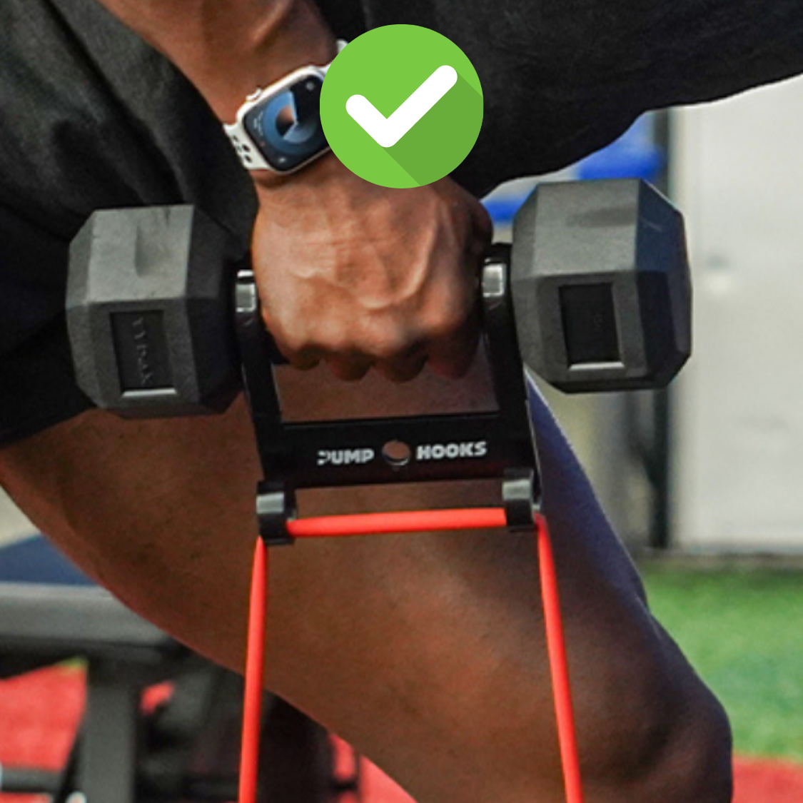 Pump Hooks are made of solid steel core with a full vinyl-dipped layer to protect your dumbbells, barbells, and kettlebells.